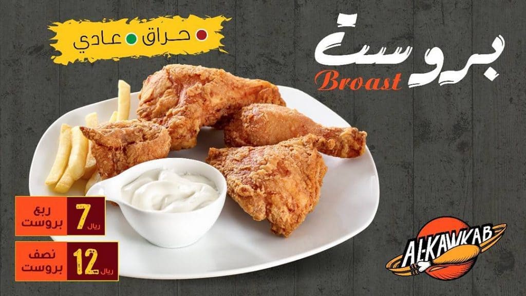 بروست لذيذ جدًا، ويتوفر لديهم عدة خيارات مثل بروست طيور السمان، المسحب، البروست العادي، الحراق، بالإضافة إلى الساندوتشات المتنوعة.